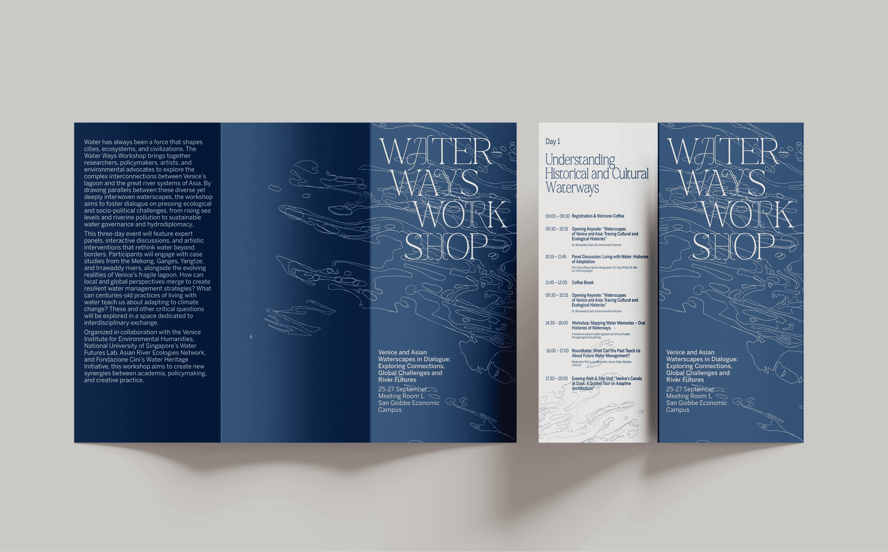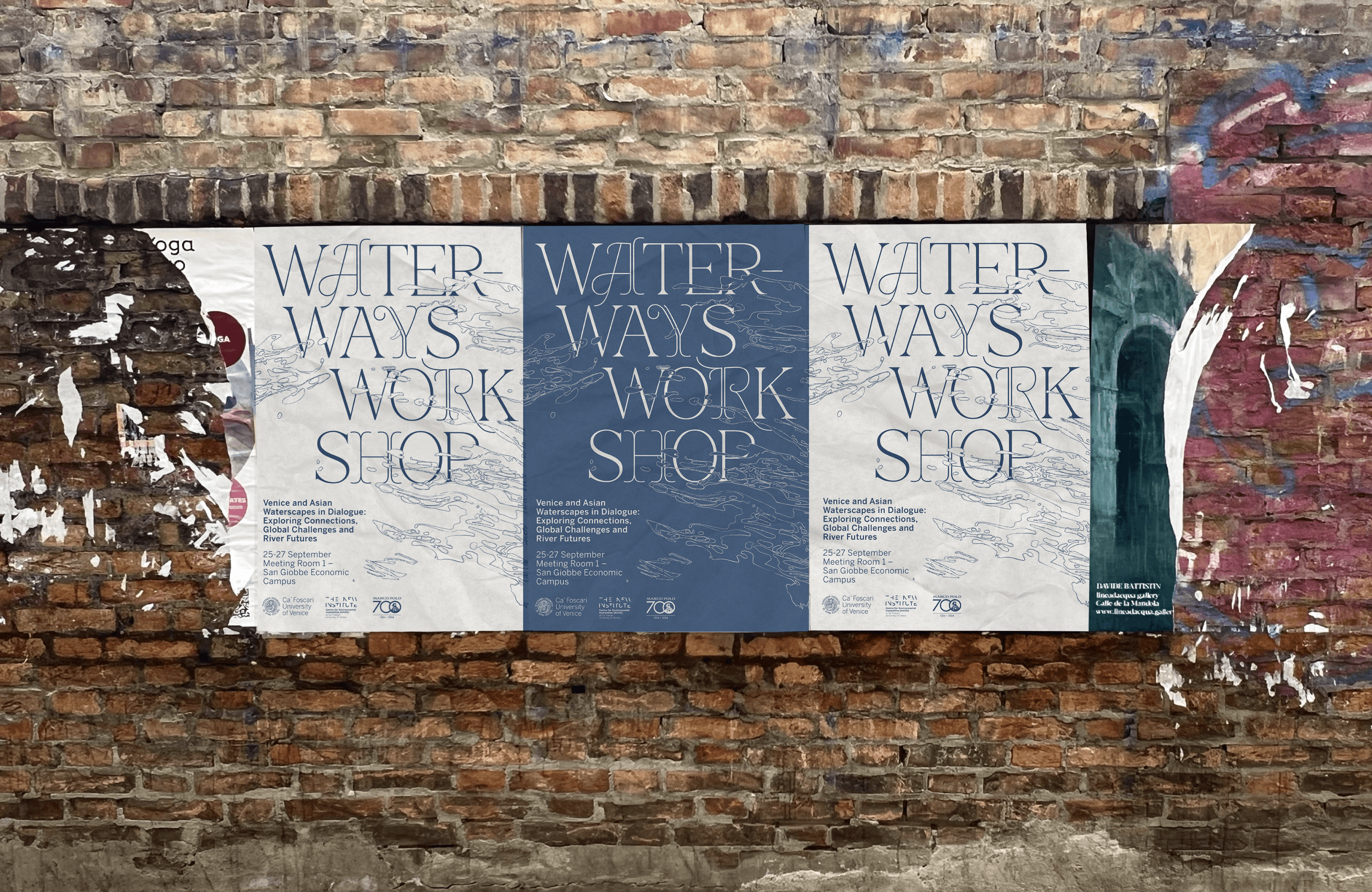 The Water-Ways Workshop was an academic event exploring the dialogue between the waterscapes of Venice and Asia. Commemorating the 800th anniversary of Marco Polo’s Silk Road journey, I developed a cohesive visual identity that synthesized these vast cultural realms across social media, event merch, and printed programs. The system features typography inspired by historical maps and key illustrations drawn from traditional Japanese styles.