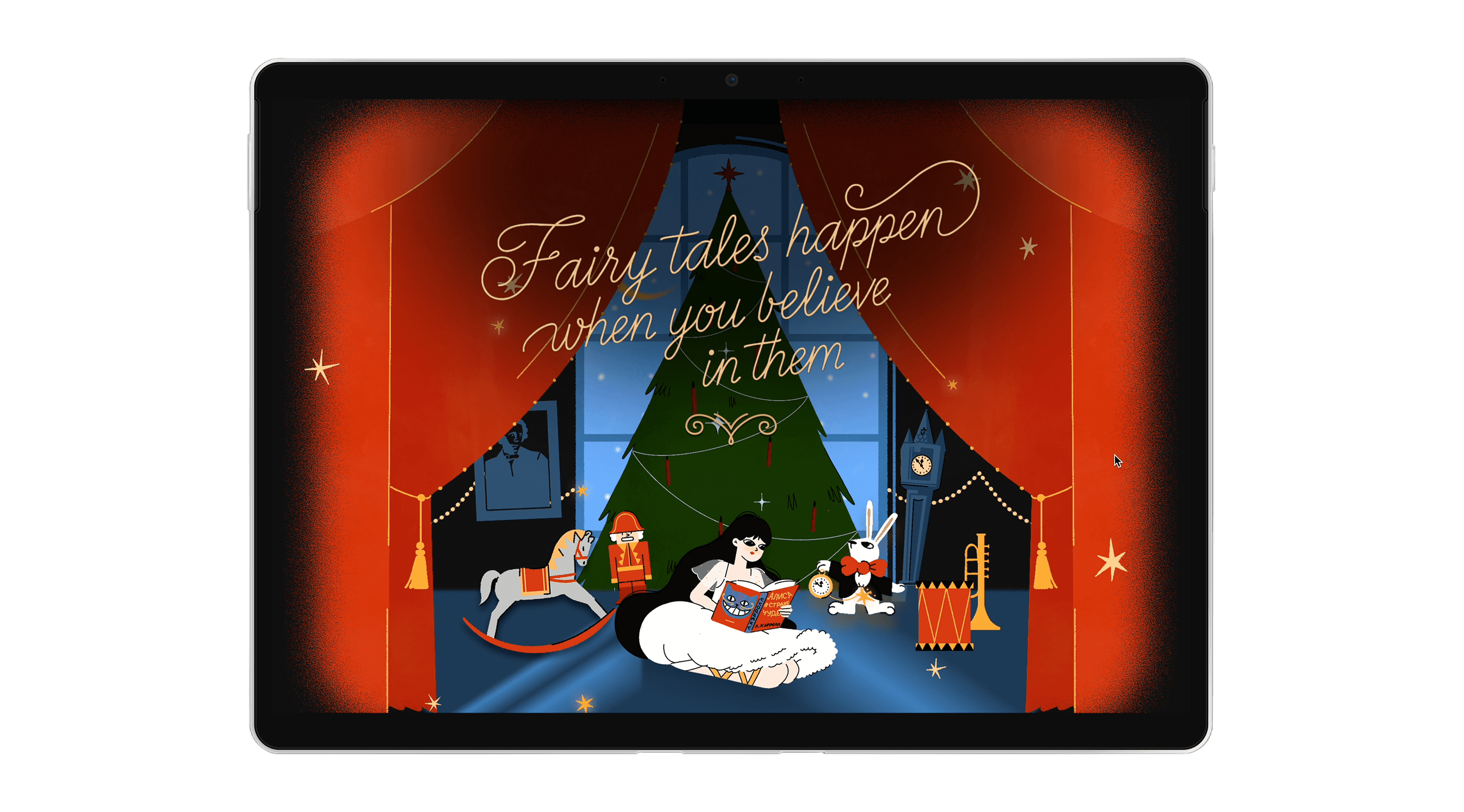 An interactive animated landing page inspired by Alice in Wonderland and The Nutcracker. Working in close collaboration with the illustrator Sasha Kukovako, I designed adaptive layouts and motion logic that bring a theatrical, slightly surreal visual language into a responsive digital format. The project combines storytelling, interaction, and responsive motion design to guide users through a playful, immersive narrative.